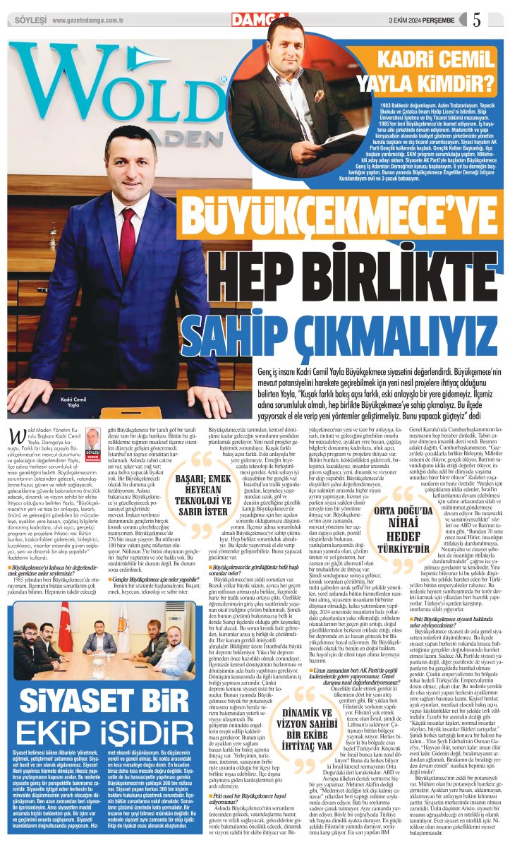 Kadri Cemil Yayla: Büyükçekmece’ye hep birlikte sahip çıkmalıyız. Genç iş insanı Kadri Cemil Yayla Büyükçekmece siyasetini değerlendirdi. DAMGA Gazetesi, haberi detayları için tıkla. Paylaş